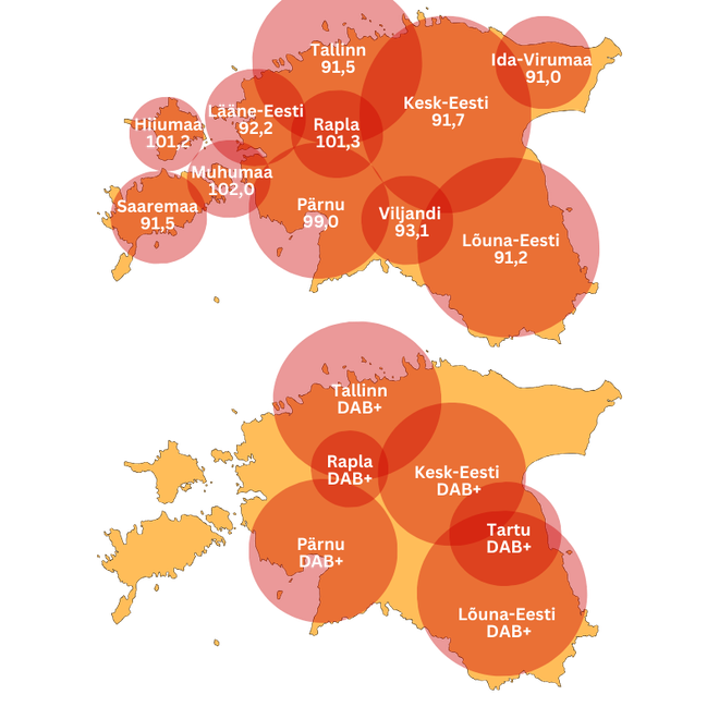 - Kesk-Eesti91,7 MHz & DAB