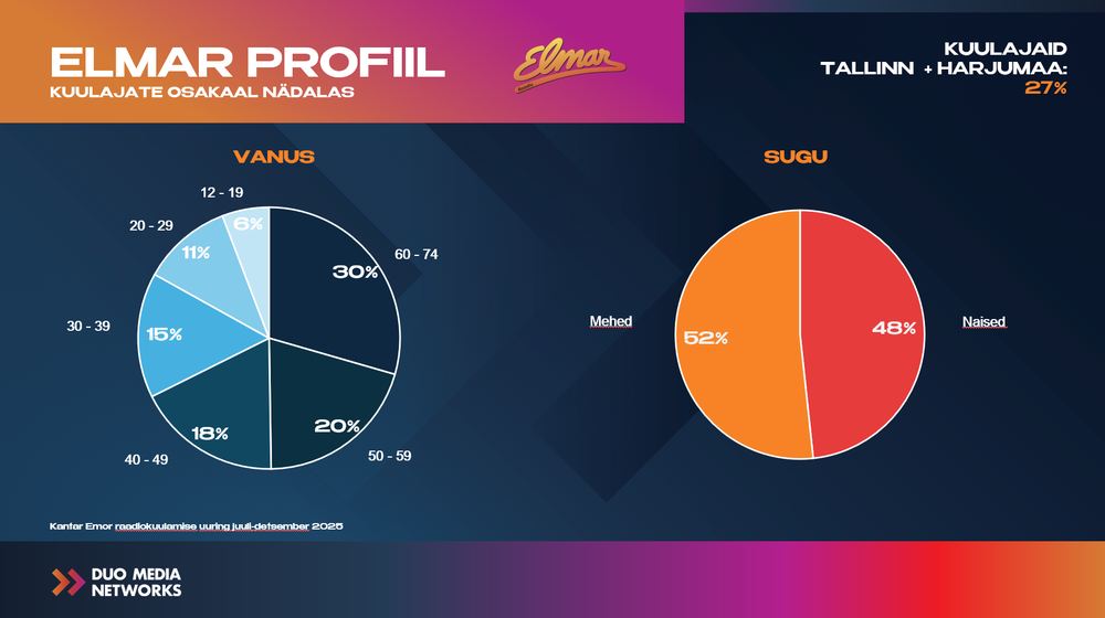 Elmari kuulaja on täiskasvanud, perekeskne eestlane. Mehi ja naisi on kuulajate seas võrdselt. 60 protsenti kuulajatest õpivad, käivad tööl või on iseendale tööandjad.